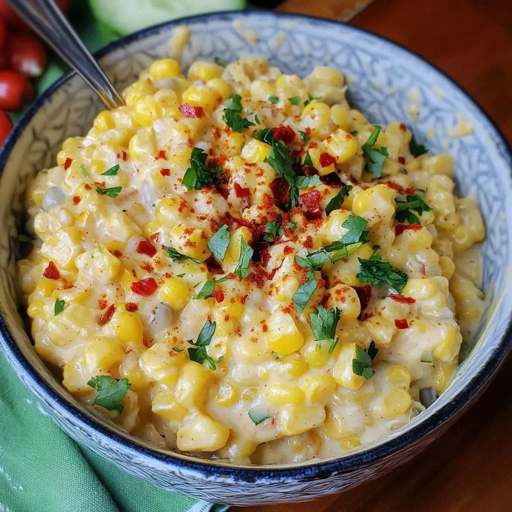 A splash of heavy cream turns the whole thing into a silky, almost dessert‑like consistency that coats the corn like velvet. The cream also helps the cheese melt into a smooth, cohesive sauce. If you’re lactose intolerant, use a dairy‑free heavy cream or a splash of coconut milk. A pinch of smoked paprika adds a smoky undertone that lingers on the palate. The fresh parsley garnish adds a pop of color and a fresh finish that brightens the dish.